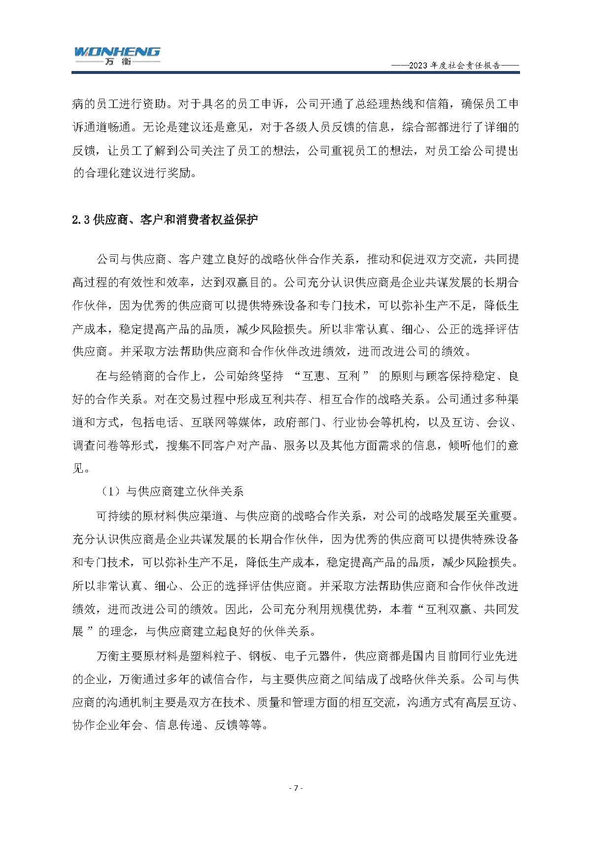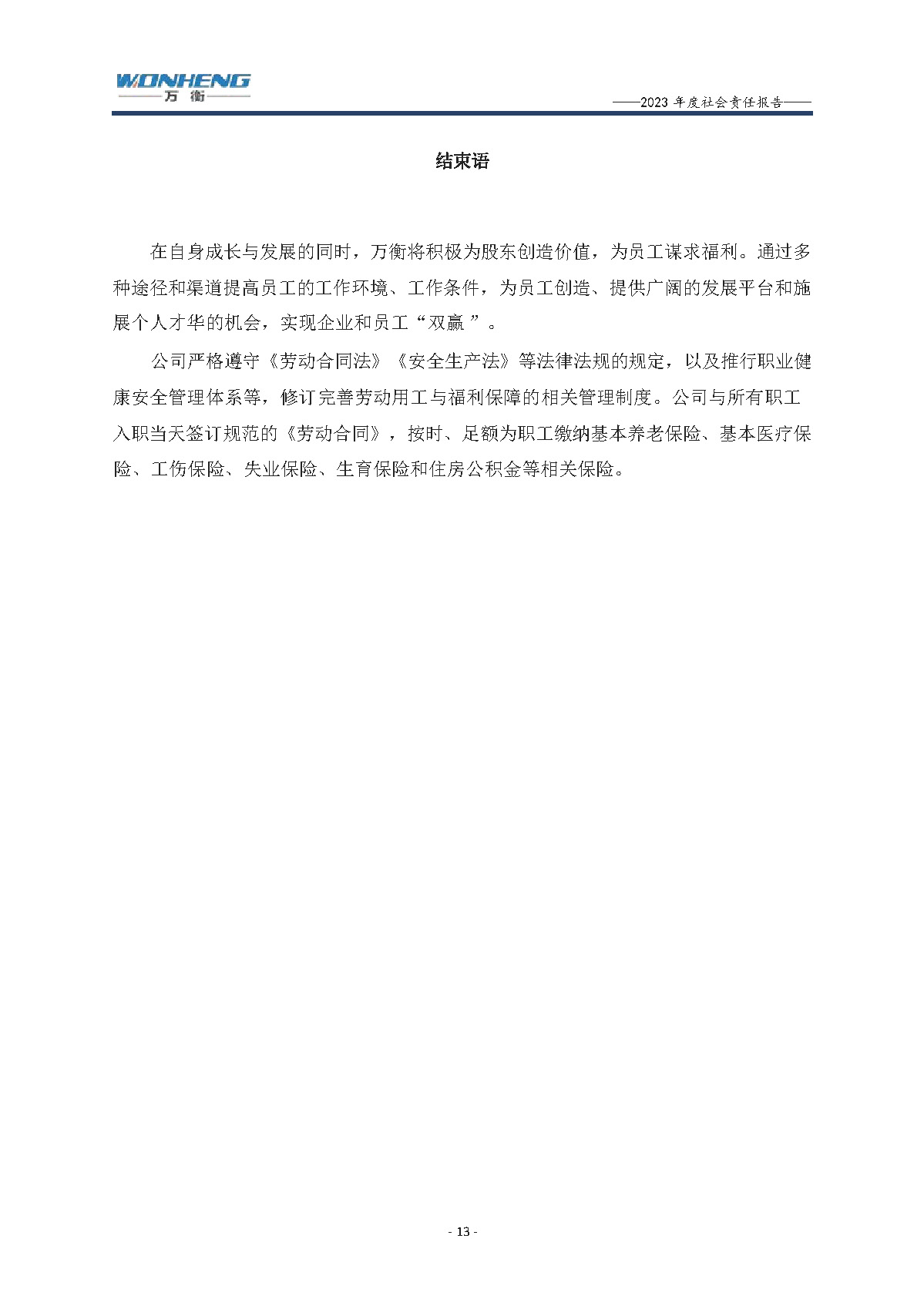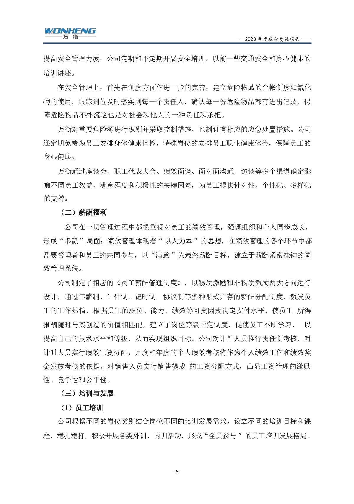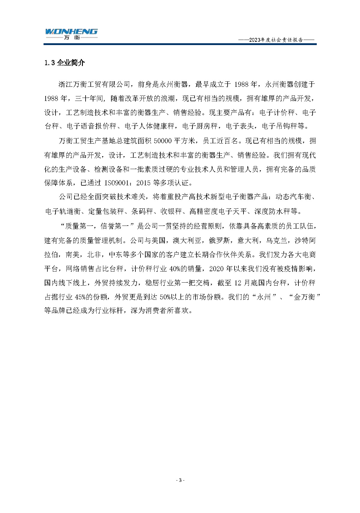 浙江萬衡工貿(mào)有限公司2023年度社會責任報告