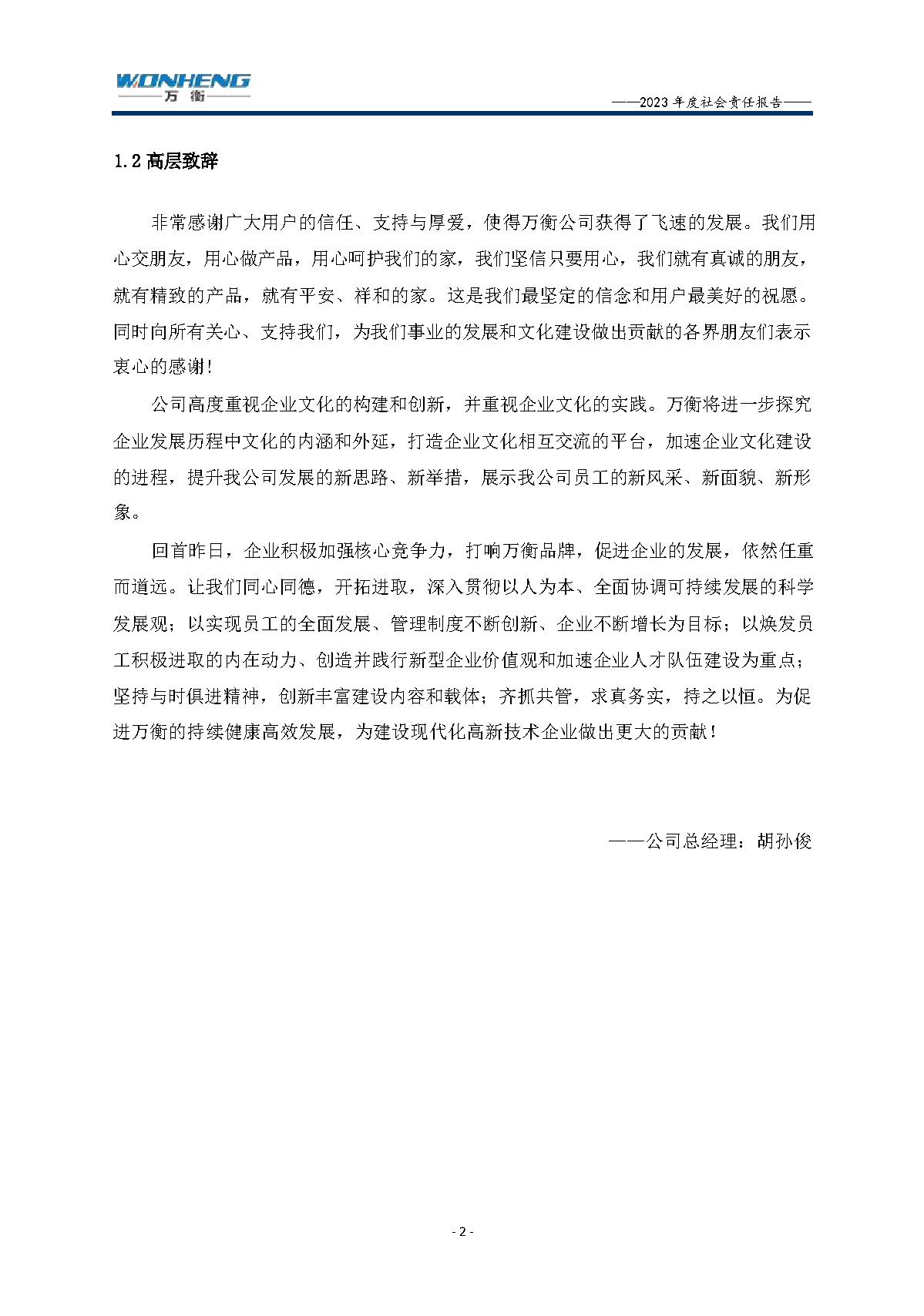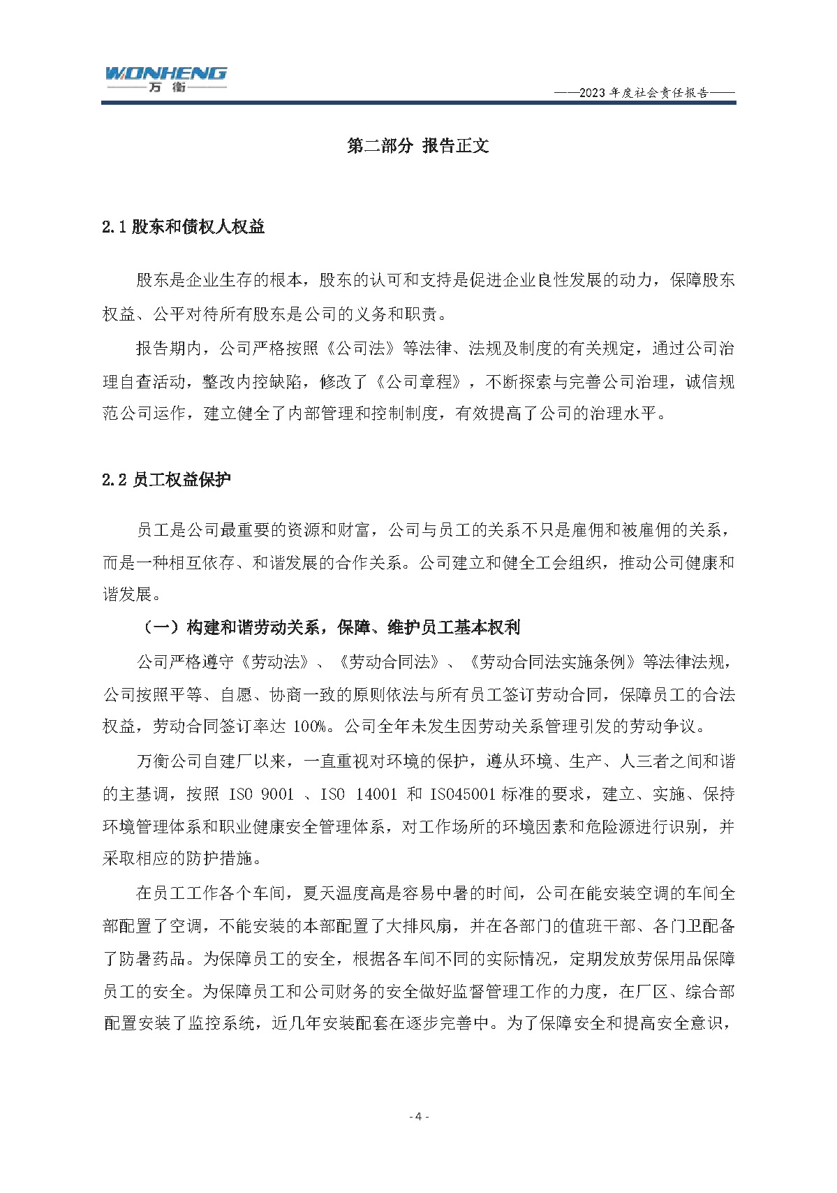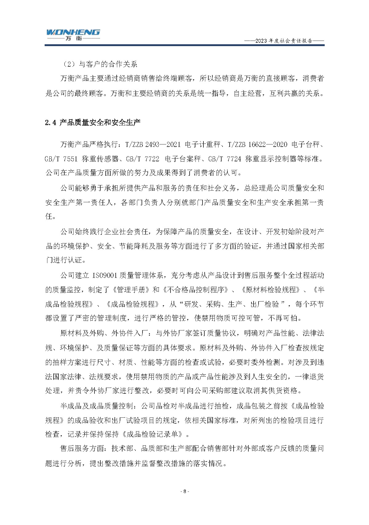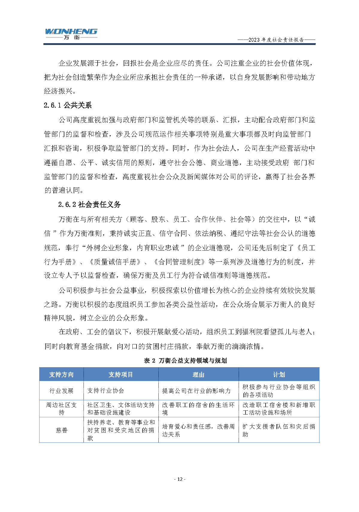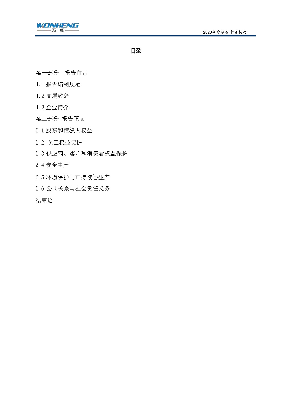 浙江萬衡工貿(mào)有限公司2023年度社會責任報告